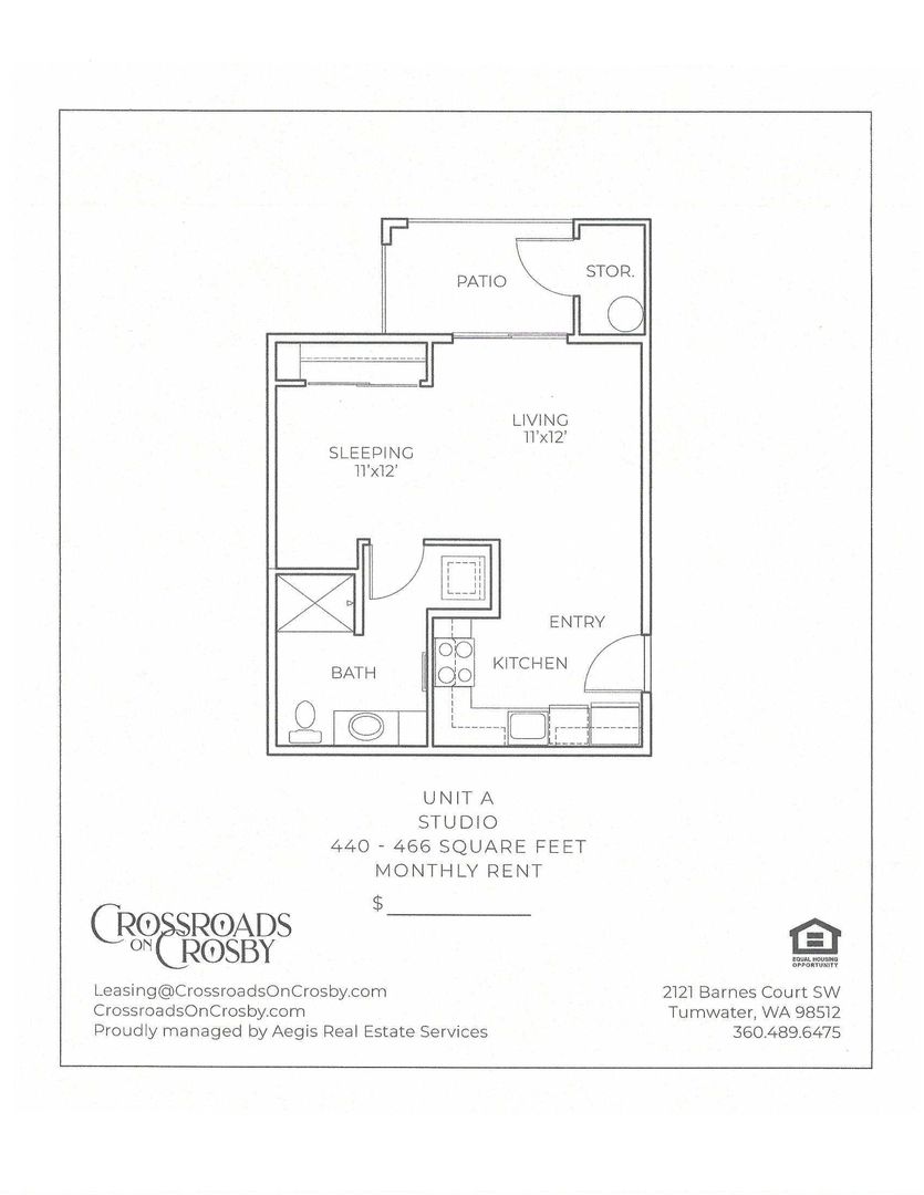This ground-floor studio apartment home is a charming 466-square-foot retreat, thoughtfully designed to maximize your living space. The open-concept layout seamlessly integrates your sleeping and living areas, creating a cozy yet functional environment.