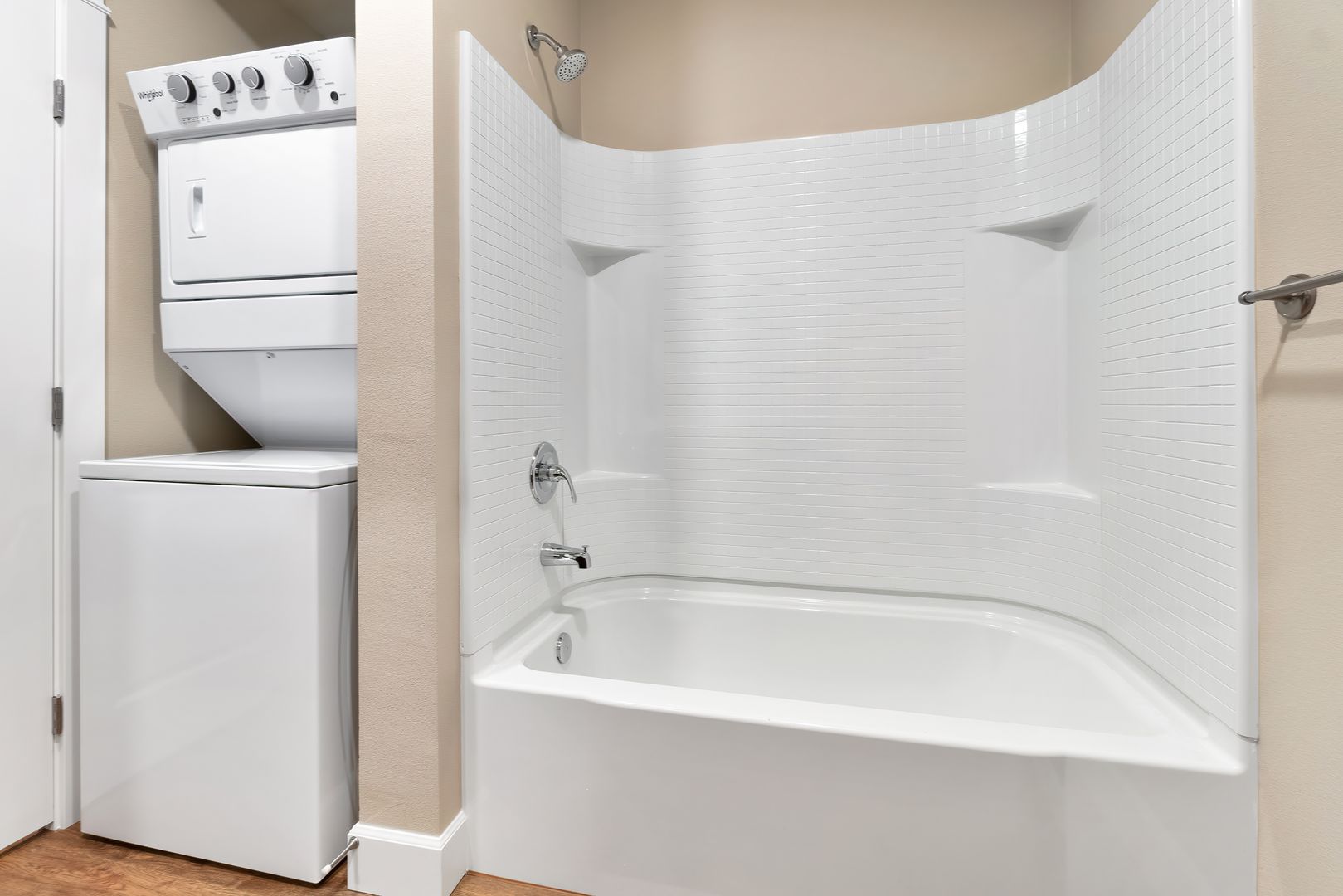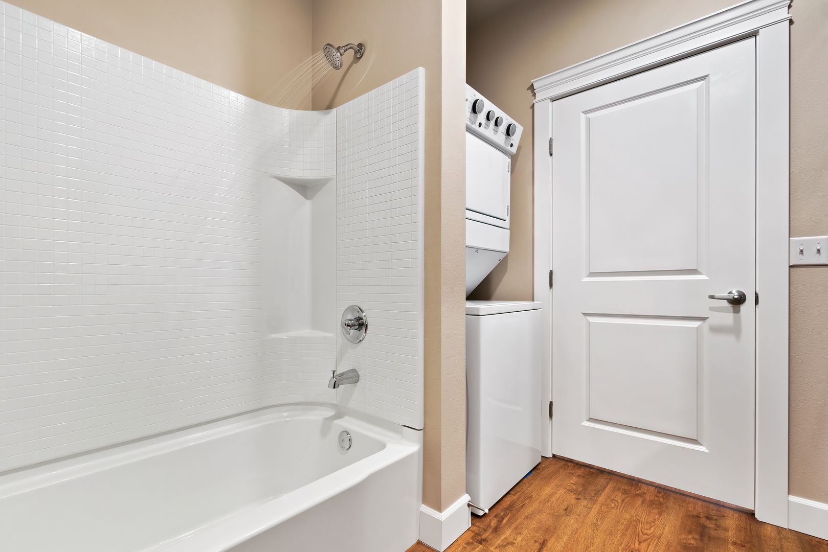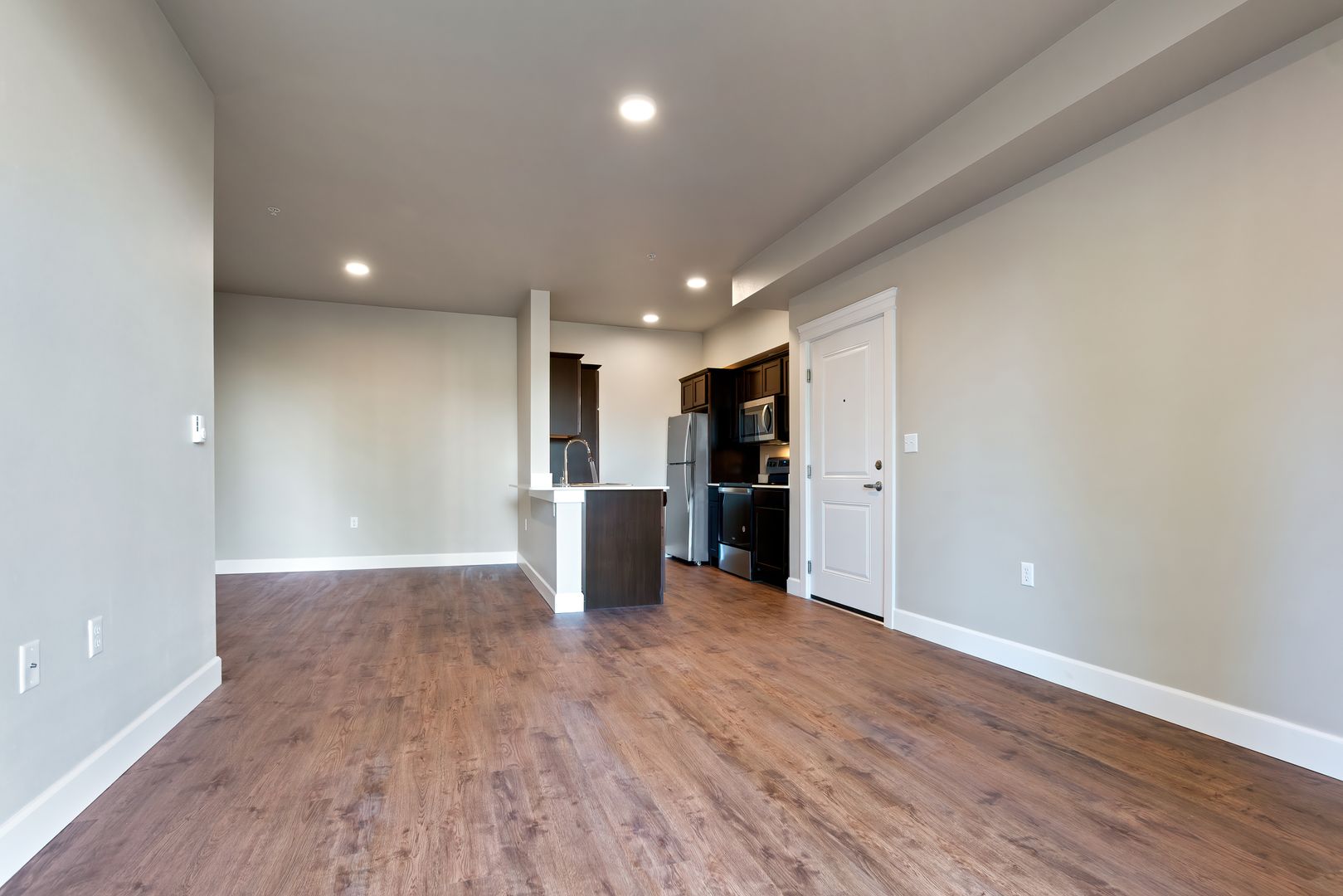 The modern farmhouse-inspired kitchen is a chef’s delight, featuring stainless steel appliances and stylish fixtures that add warmth and sophistication. The spacious living area is perfect for relaxing or entertaining, while your private patio invites you to enjoy your morning coffee or unwind under the evening sky.